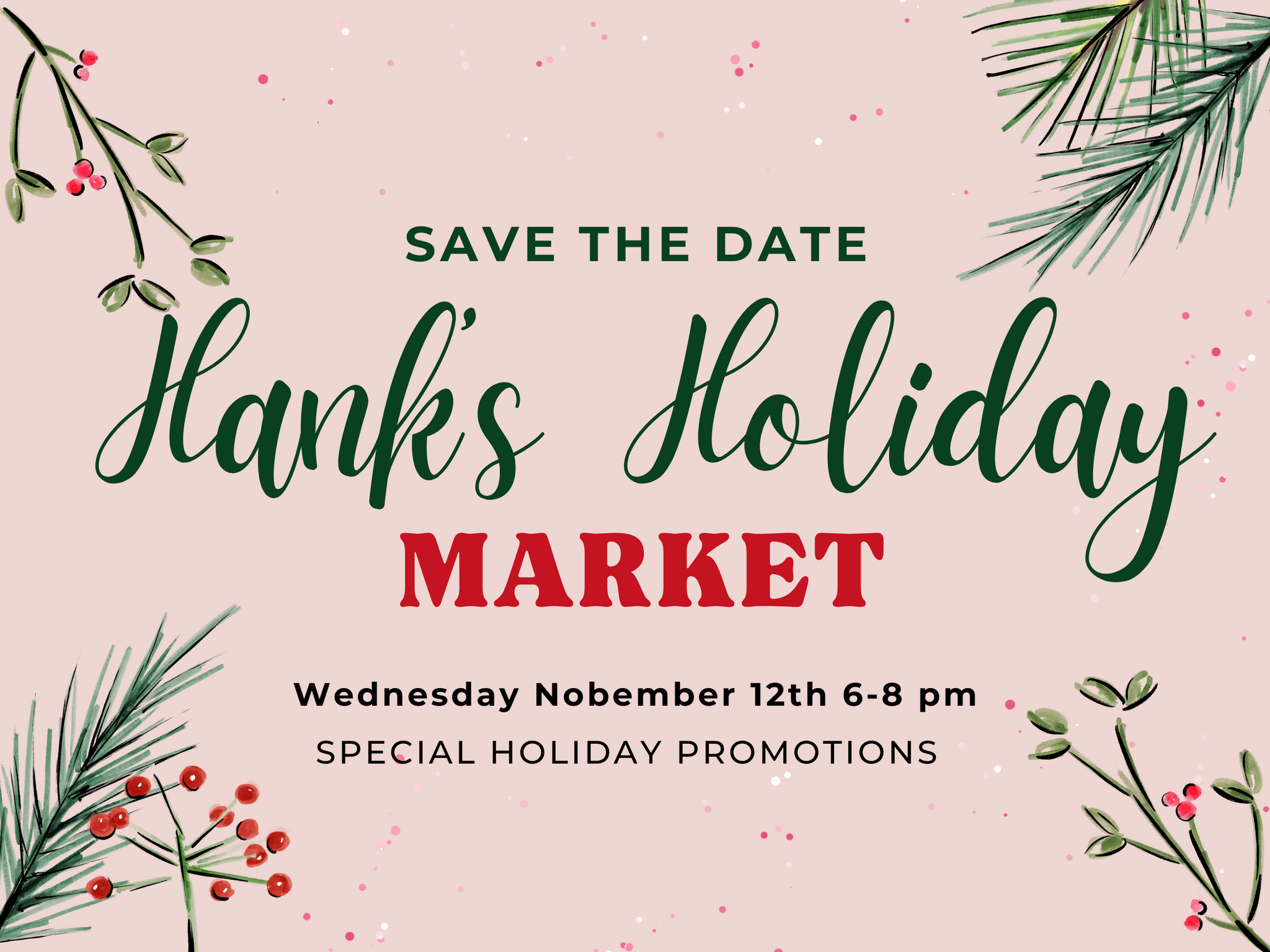 Hank Store Hours: Monday- Saturday 10 am -5pm, Sunday 12pm-4pm.