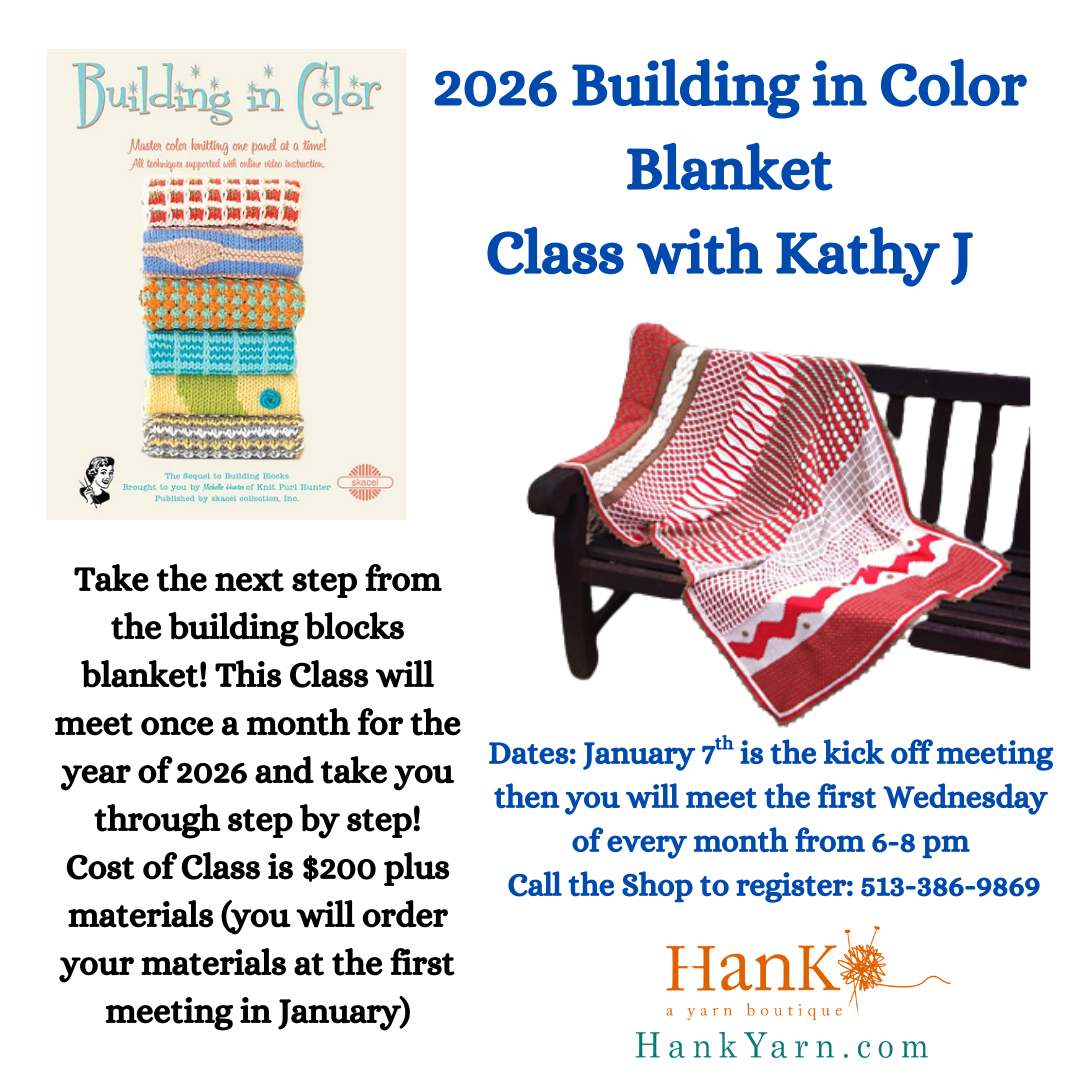 Merri's Thursday evening Knit Nightsfrom 6:00 - 8:00 p.mJoin Merri for Knitting and Community.She will be available to assist with your knitting projects.A $60 stamp card entitles you to 5 visits. Purchase a card when you call or get one your first Thursday.Supplies required: Pattern of your choice plus required materials from Hank.Store credit only for class cancellations.
